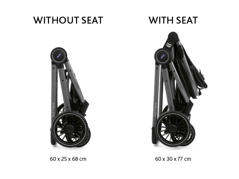 It is extraordinary compact once closed in every configuration, even with seat both in rearward and in forward facing configuration.