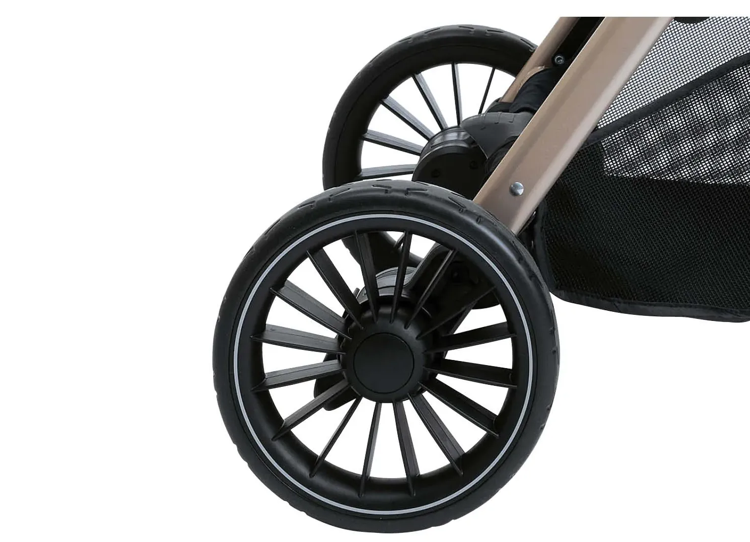 Equipped with shock absorbers on all wheels and ball bearings on rear wheels, so that parents can enjoy smooth and pleasant walks with their babies.