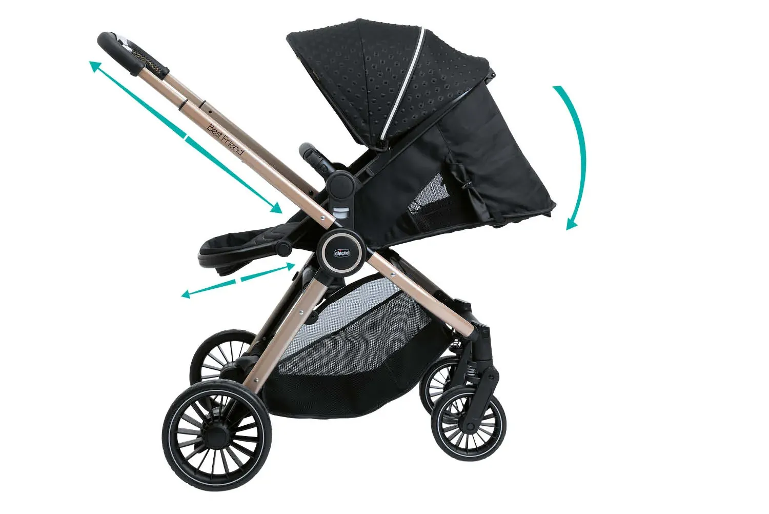 The Chicco Best Friend Pro is your new and flexible companion that is suitable right from birth. Thanks to its fully-adjustable backrest, the stroller is approved for being used from birth up to a weight of 15 kg.
