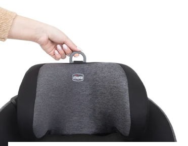 The headrest can be adjusted in height to adapt to growth. In the configuration with the Base and the five-point harness system, the headrest adjusts at the same time as the harness system.