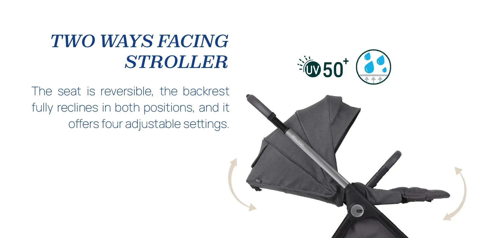 - Large sun canopy with UPF 50+ and peekaboo window.