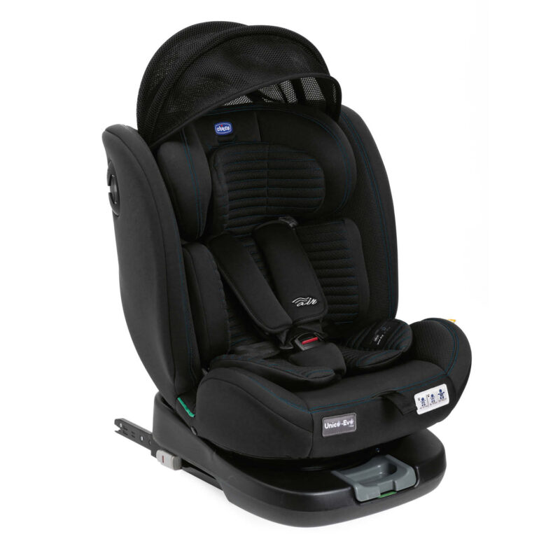 Unico Evo i-Size accompanies the child from birth up to around 12 years of age. Installation via five-point belt system up to 105 cm (18 kg) in both rearward and forward facing. From 100 to 150 cm, the child is held in place by the vehicle’s three-point belt.