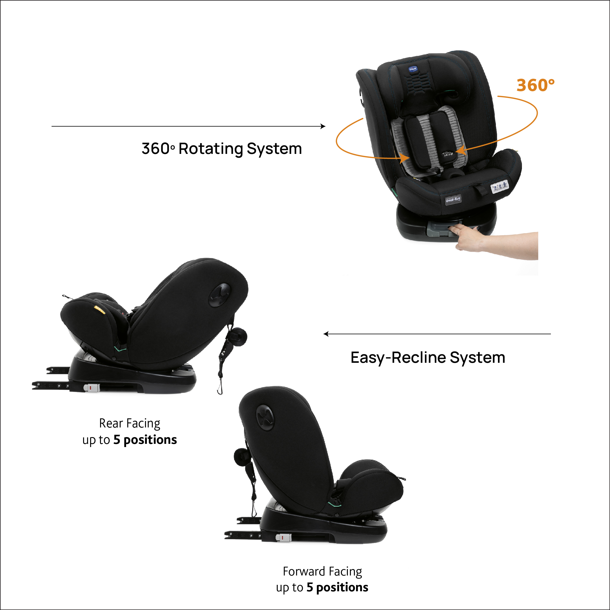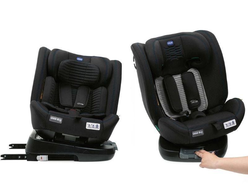 The swivel seat allows Unico Evo i-Size to be turned towards the adult, simplifying positioning of the child in case of use of the seat in the opposite direction of travel.