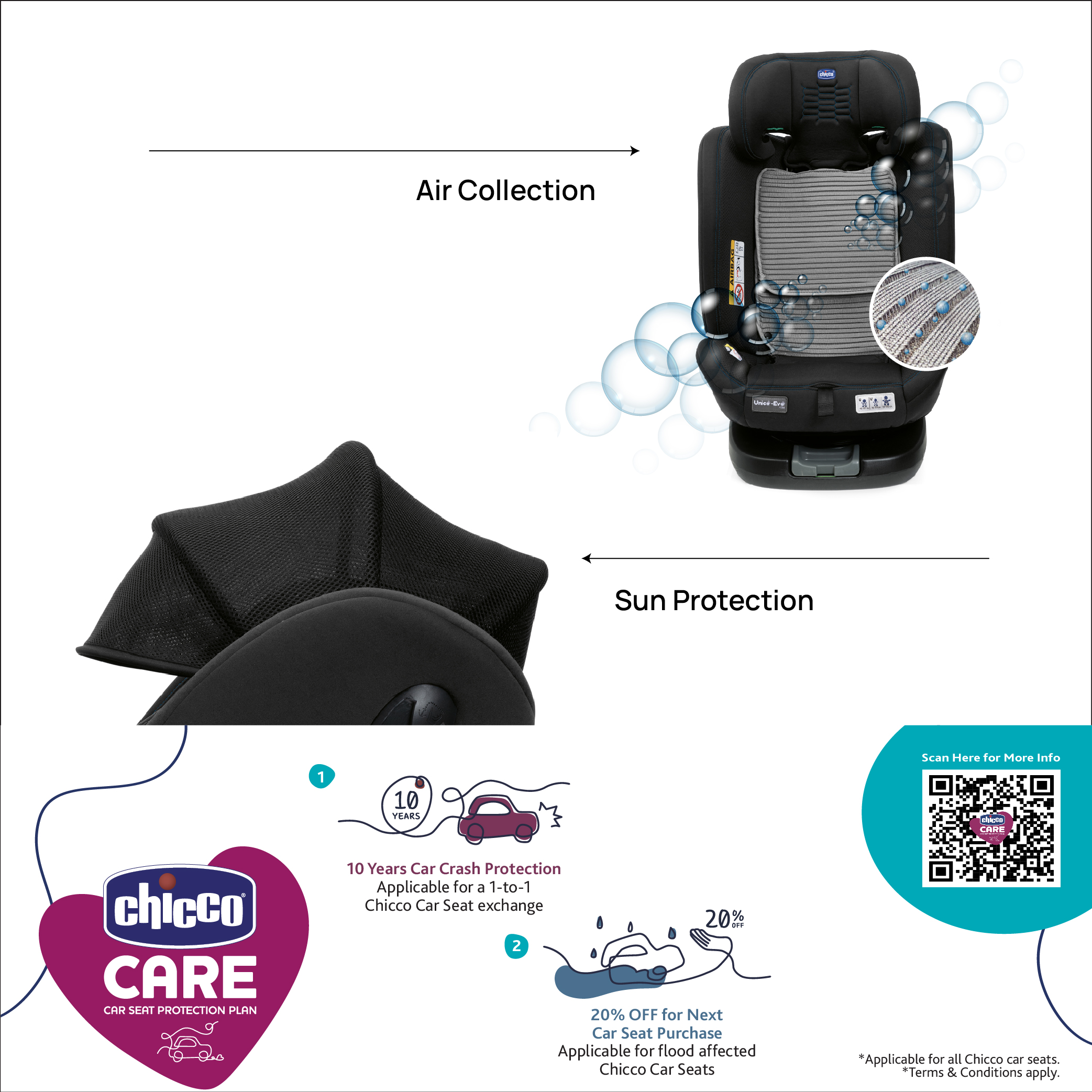 The Unico Evo i-Size is equipped with the “Fit-Kit” labels: these are clear and simple indications on the range of use of the seat (40-150 cm) and the inductor (40-60 cm), on installation with respect to the (rear-facing and forward-facing) and on the child restraint system (five-point belt system up to a maximum of 105 cm/18 kg; with vehicle belt from 100 to 150 cm).