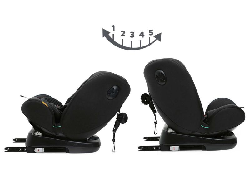 Comfortable thanks to the padded insert for newborns (up to 60 cm) and the 5 reclining positions in both forward and reverse directions.