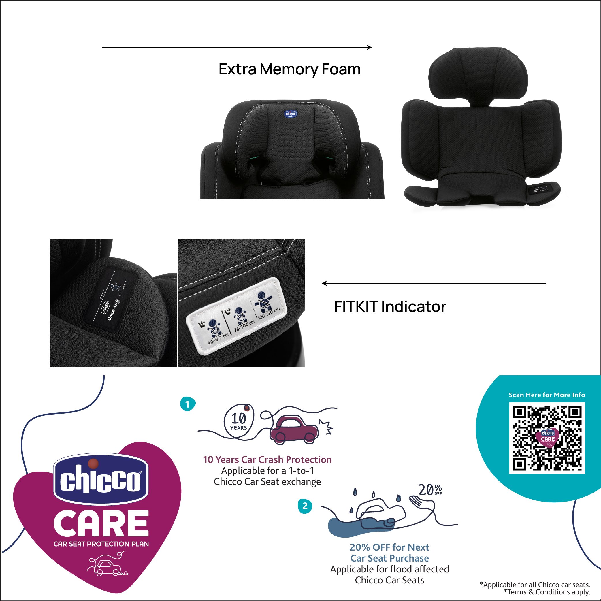 The Unico Evo i-Size is equipped with the “Fit-Kit” labels: these are clear and simple indications on the range of use of the seat (40-150 cm) and the inductor (40-60 cm), on installation with respect to the (rear-facing and forward-facing) and on the child restraint system (five-point belt system up to a maximum of 105 cm/18 kg; with vehicle belt from 100 to 150 cm).