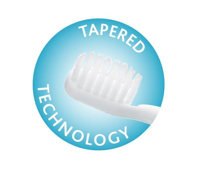 It has plaque removal efficacy and very soft tapered technology bristles, with ultra-fine ends, for a delicate action on enamel and sensitive gums.