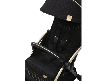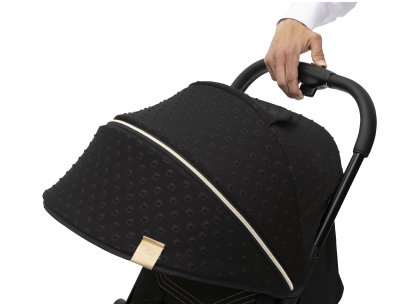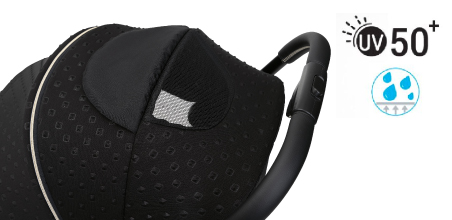 Extendable XXL canopy characterised by UV50+ protection and water-repellent treatment. The mesh window on the top allows you to maintain eye contact with your baby.