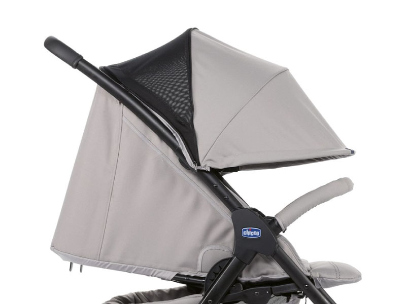 Adjustable/removable canopy with mesh window offers comfortable shade from the sun.