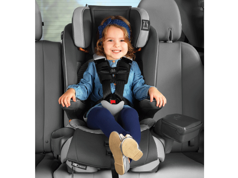 A five-point, no-rethread harness provides reassuring security for growing toddlers and features a convenient, one-pull tightener and padded waist belt that helps keep the buckles accessible for easy in/out. The harness easily hides away to create a belt-positioning booster with shoulder and lap belt guides for big kids four years and up. Two dishwasher-safe CupFolders™ feature easy push-button removal and fold out of the way to save space when empty. And a bonus storage console fits into either CupFolder™ to carry big kid necessities.
