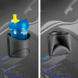 Removable, dishwasher-safe cup holders fold out of the way when empty to save space.