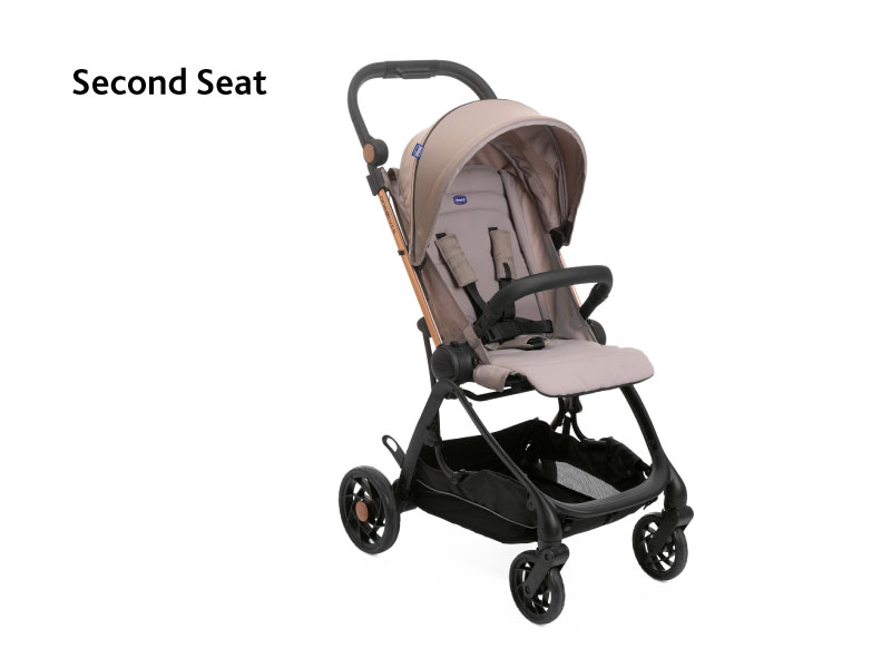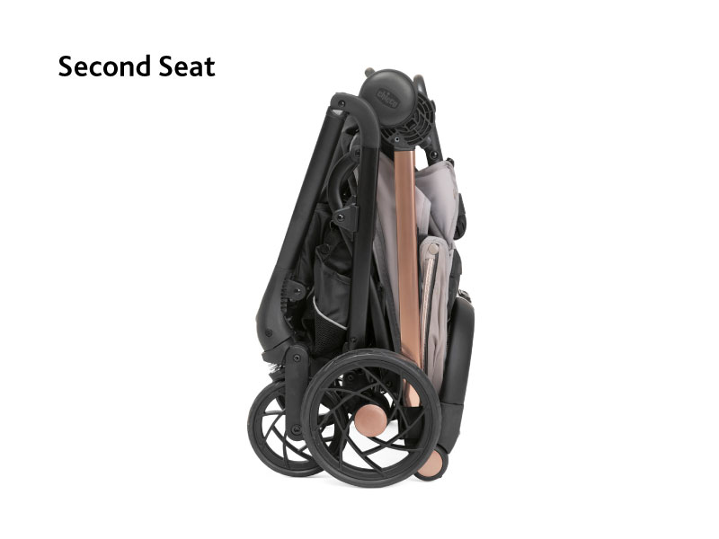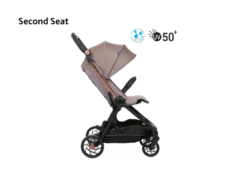 Easy self folding mechanism with just one hand. When folded it is really compact and stand alone. The second seat’s weight only 1.7kg and it makes the stroller even lighter only 6.6kg!