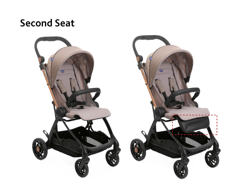 The leg rest can be easily removed from the first seat and attached to the second one to always guarantee the best comfort for baby.