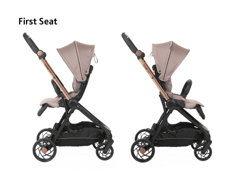 One4Ever stroller, composed by one frame and two seats (First seat - birth to 22 kg, Second Seat - 6 months to 22 kg), is the modular and customizable solution to meet the needs of both parents and children, from birth up to 4 years. Extremely easy to fold and unfold with auto folding system, with just one click.