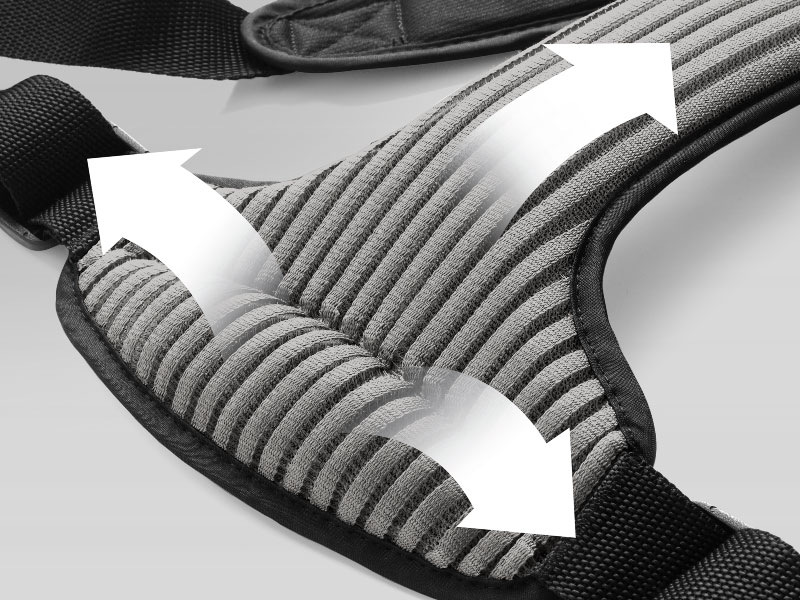 3D AirMesh fabric is concentrated on shoulder pads and lumbar allowing air to circulate freely where parents need it most, making every outing more comfortable.